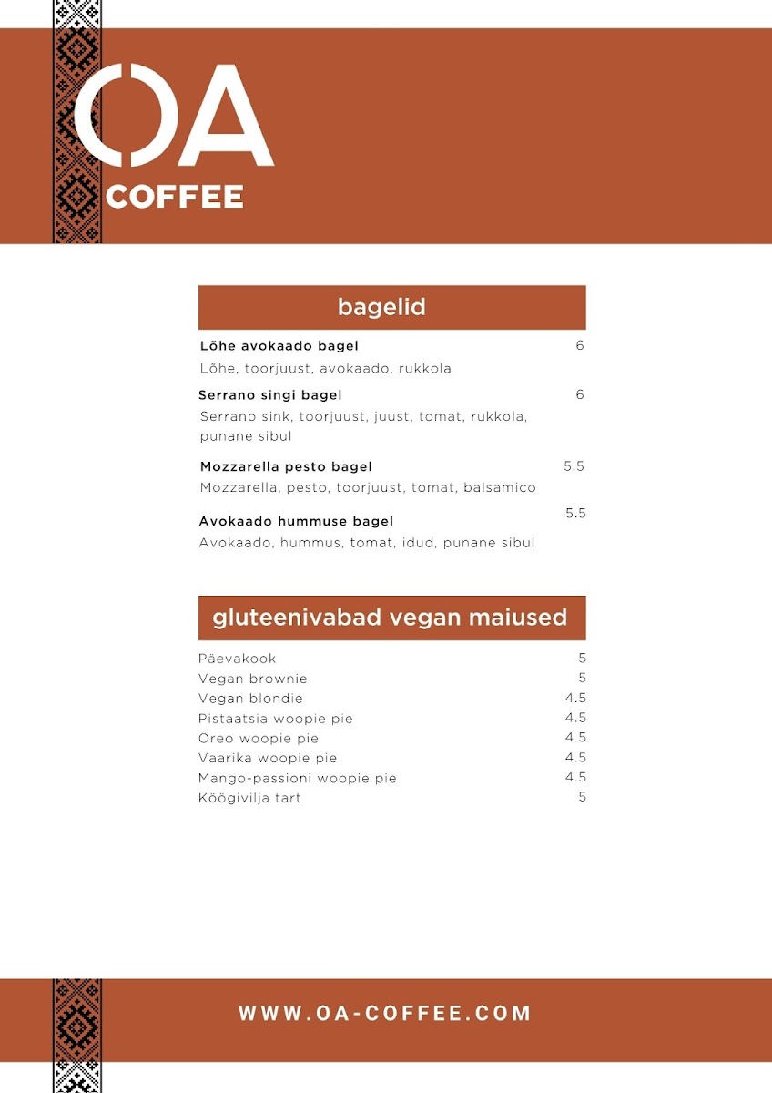 OA Coffeeshop Menu